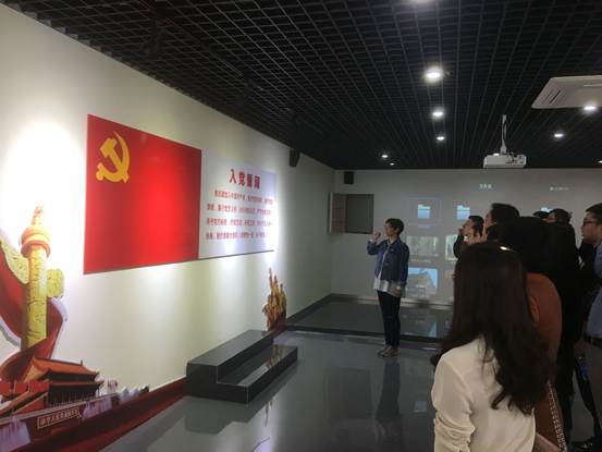 在党建馆内,全体党员重温入党誓词。大家面对党旗,再次庄严宣誓,不忘入党初心,牢记历史使命,理想信念、责任使命,在全体党员心中产生强烈的共鸣。