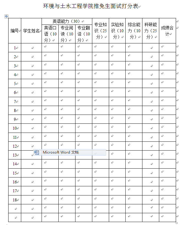 4、接受推免生的学院组织面试,主要参照《伟德国际1946bv招收攻读硕士学位研究生复试办法》进行组织。面试内容包括专业知识、综合能力、动手能力、外语听说能力以及思想政治品德等。面试成绩记入《推荐免试研究生面试记录表》。环境与土木工程学院推免生面试的打分表见附件。