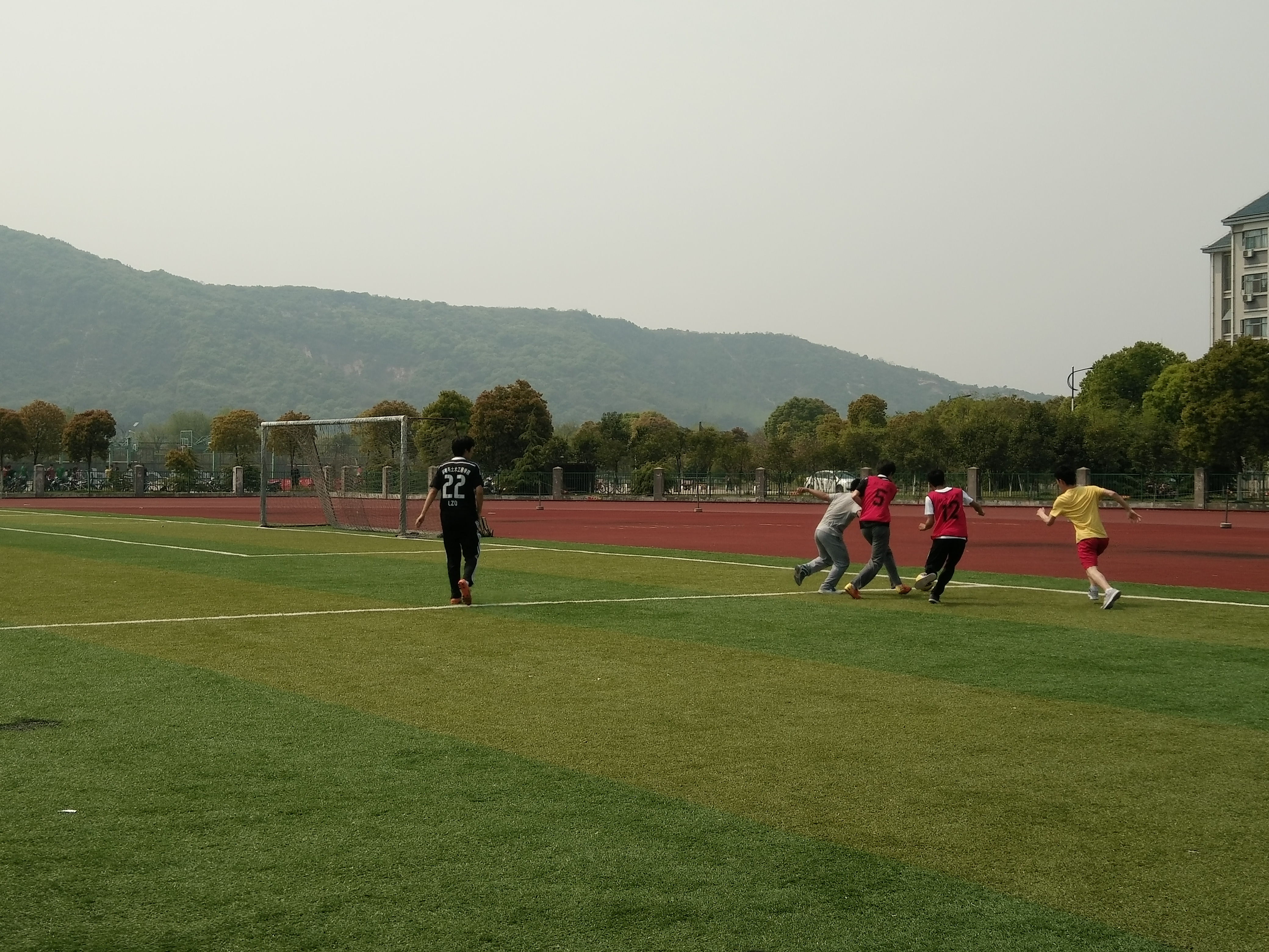 为了加强学院班级之间的沟通,培养学生参加体育锻炼的习惯,丰富学生们的课外生活。2015年4月19日下午1:30,一场由环土学院学生会举办的学院足球赛在西北操场激烈展开。环境工程与土木工程专业分别派出队伍参加了比赛。