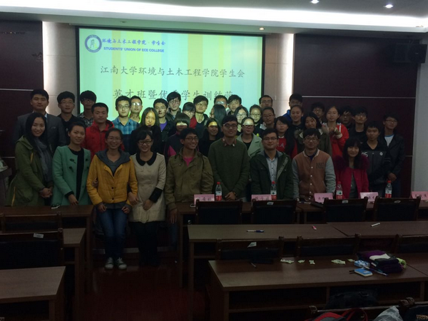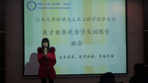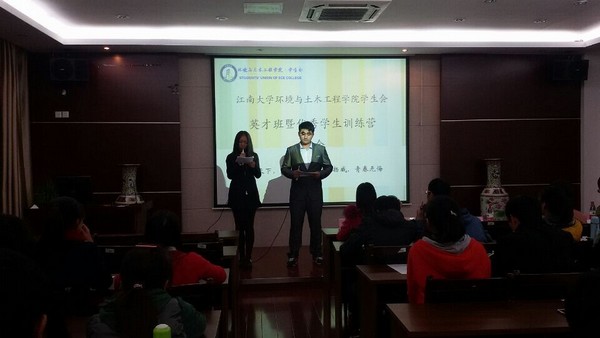 为了促进英才班内部的沟通与交流,建立良好的班风学风,2014年11月8日星期六晚6:20于环境与土木工程学院楼三楼多媒体教室召开了环境与土木工程学院学生会优秀干事训练班开班仪式。学生会主席成维佳,副主席范子健,英才班班主任尹希娅,辅导员甘鱼倩、吴艳泽,各中心主任以及英才班全体学员均到场。