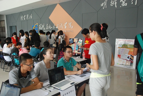 2014年9月10日下午一点,学生会招新双选会在学院楼一楼如火如荼地开展,学生会九大中心卖力地展示自己中心的特色,新生们也都热情高涨地填报了志愿表。