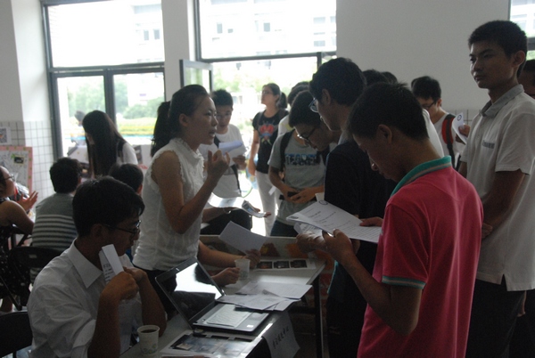 本着方便于新生报名参加学生会,让新生们能够更加全面地了解学生会的原则,学生会进行创新,第一次开展了招新的双选会。首度开展的双选会也得到了不错的回应,新生们热情高涨,蜂拥而至,纷纷向自己所感兴趣的中心了解情况,和学生会的主席、主任们进行了进一步的沟通交流,明白了自己将要承担的责任,自己需要履行的义务,也确定了自己的发展方向,最后郑重地填写完报名表。此过程中,学生会的中高层们与新生分享了自己的工作历程,自己在学生会的成长,让新生们感到十分亲切,十分向往加入如家一般温馨又能得到充分锻炼的学生会。