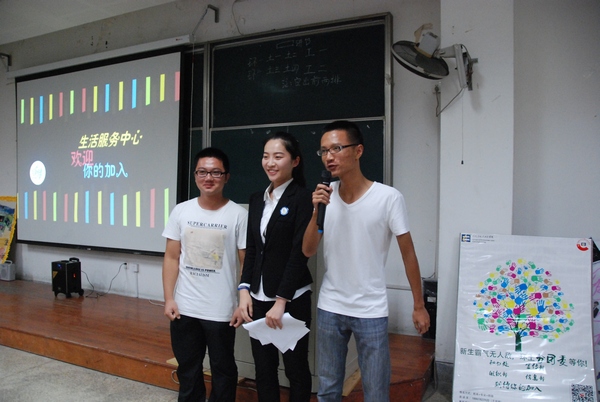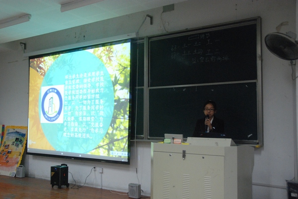 2014年9月12日晚六点,环土学生会、分团委、科协、青木剧社、爱心社系列社团于1b103教室面对大一新生开展了招新宣讲会,到会的嘉宾有环境工程专业辅导员周佳赟老师,环土学院学生会主席成维佳,学生会常务副主席杨雅楠,学生会副主席兼社联主席范子健,学生会副主席宋岩和付晓龙,科协副主席熊能,爱馨社社长武岳,青木剧社社长方峥,分团委副书记游博生。