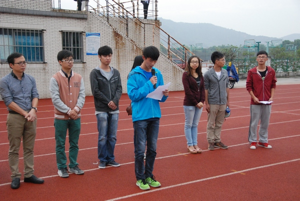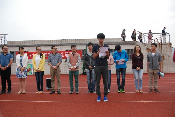 2014年9月19日下午,正是桂花飘香的时节,院运会选拔赛于北区西操场在集体大一新生的期待下有序召开了。出席此次活动的有院党委副书记副院长金明媚老师,分团委书记、工管专业辅导员蒋达锋老师,分团委副书记、土木专业辅导员张铁根老师,环工专业辅导员周佳赟老师,学生会主席团成员以及14级全体新生。开幕式由院学生会体育活动中心主任陈嘉豪同学主持。