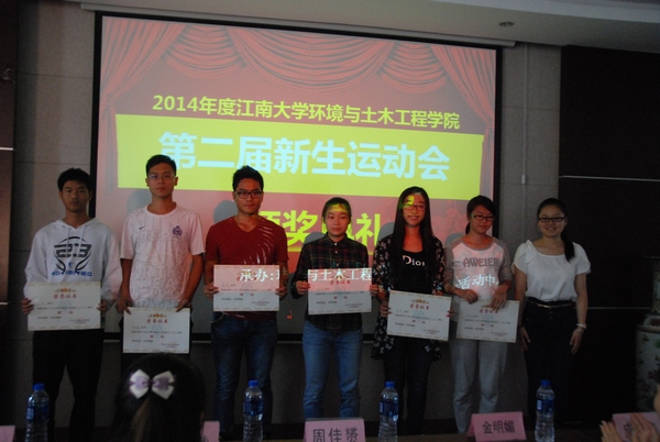 秋风吟诵着运动的快乐,丹桂庆贺着成功的喜悦。2014年10月8日下午一点半,环境与土木工程学院第二届新生运动会颁奖典礼在环土学院楼三楼会议室隆重举行,出席的嘉宾有院党委副书记兼副院长金明媚老师,环工辅导员周佳赟老师以及学生会主席团各位成员。