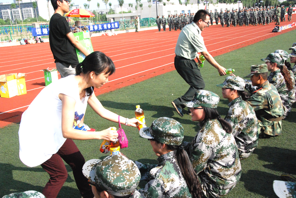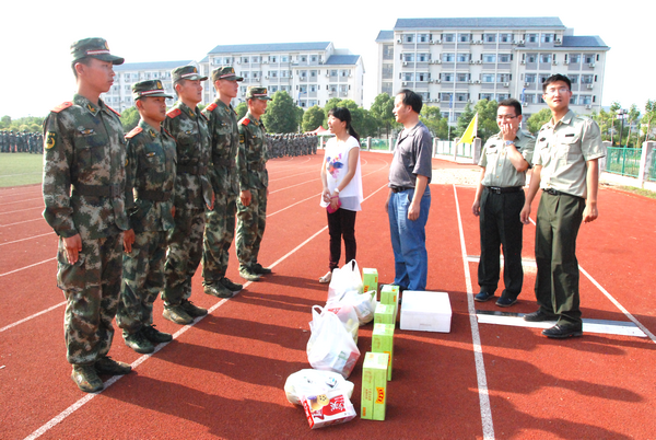 6月23日下午,阳光明媚,晴空万里,环境与土木工程学院党委书记华渊,副院长金明媚,分团委书记蒋达峰,冒着酷暑来到我院军训基地西北操场慰问正在军训的同学们。