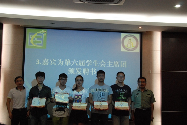 会议开始由主持人冯晓丽介绍嘉宾以及换届细则;学生会主席李浩上台对学生会这一年以来的工作的总结和回顾;接下来是嘉宾为第六届学生会主席团颁发聘书,以彰显过去一年中他们为环土学生会做出的巨大贡献;紧接着是主持人宣布新一届主席团候选人名单,他们分别是成维嘉、宋岩、付小龙、范子建、杨雅楠五人。