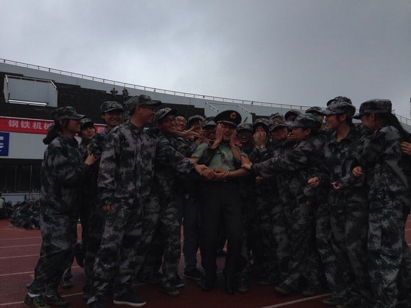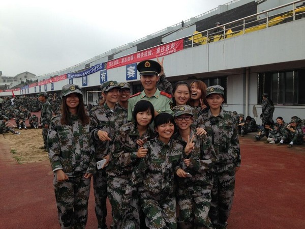 这就是我们的教官,一群普普通通的中国军人,他们认真、耐心、负责。在我们训练休息期间还教我们唱一些军歌,他们没有天籁般的嗓音,他们唱出的只是自己内心对于祖国、对于人民、对于世界的爱,并且想把这些伟大的感情通过我们传播出去,给世界带来光明,这就是我们的教官,一群可爱的人。