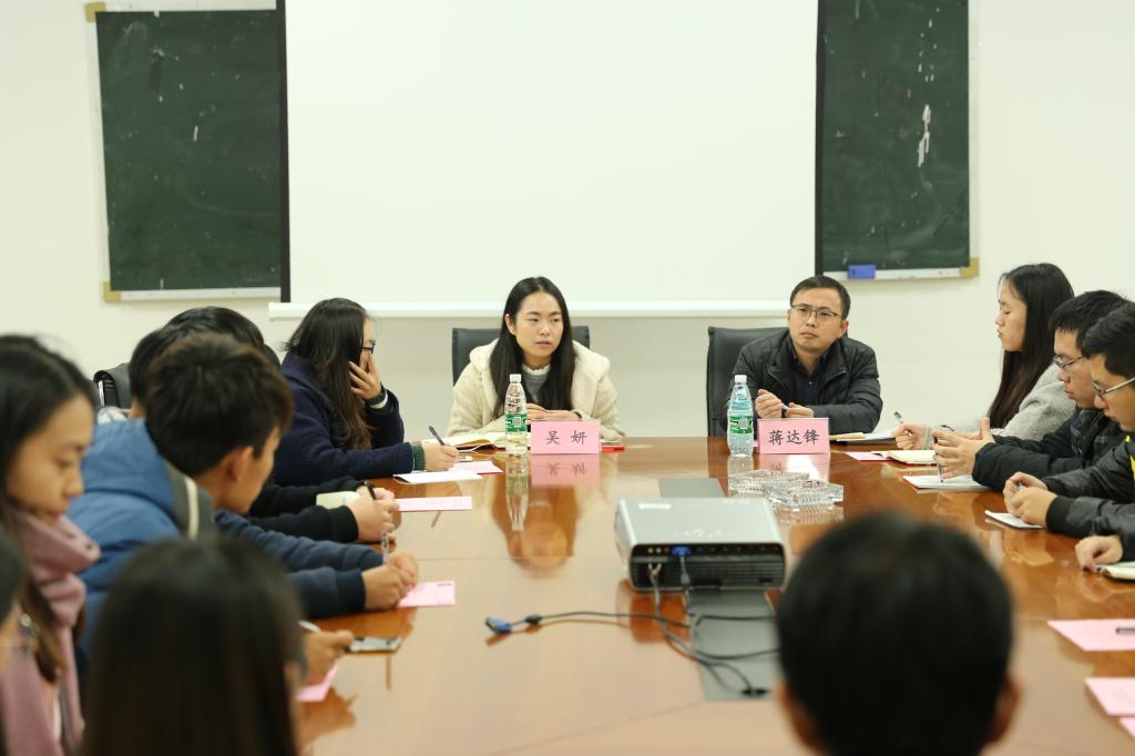 会议在学生会办公室部长张一飞的主持下开场,首先是环土学院学生会各部门部长依次进行工作汇报。十个部门部长依次发言,对本学期的部门工作进行了简短总结,汇报中,大家指出了本部门在各方面存在的优缺点,针对各项活动的举办进行了反思和总结,并对下学期的工作做了展望,表达了努力工作、进一步完善部门各项建设的坚定决心。随后,吴妍老师就本学期的工作感想和在座各位做了分享,她首先肯定了大家为学院学生会所做的努力和贡献,随后,她指出学生会工作应该具有整体性和全局观,针对未来工作应该做到提前筹划和提早安排,她强调了宣传工作应具备学院特色和亮点,各部门应广泛了解、借鉴学习各大优秀新闻媒体平台,只有扩大眼界,才能不断提高,开创宣传工作的新形式、新内涵。接下来,蒋达锋老师进行发言,蒋老师着重强调了学院团学工作的开展,针对各班级的团日活动和宣传情况进行了总计点评,他指出,学生组织开展活动,应该应国家的号召,结合最新形势,加大党团信息的捕捉和宣传的力度,并及时总结和发布。