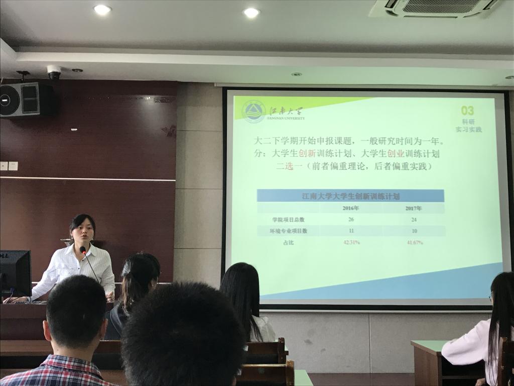 最后,周老师展示了过去一年环境工程专业学生的成果。2013级学生的就业和升学情况,环工专业获荣誉和奖学金的情况,海外交流情况。借此机会也向同学们推荐适合本专业的国际交流项目,希望大家对今后的大学生活有长远、清晰的规划。