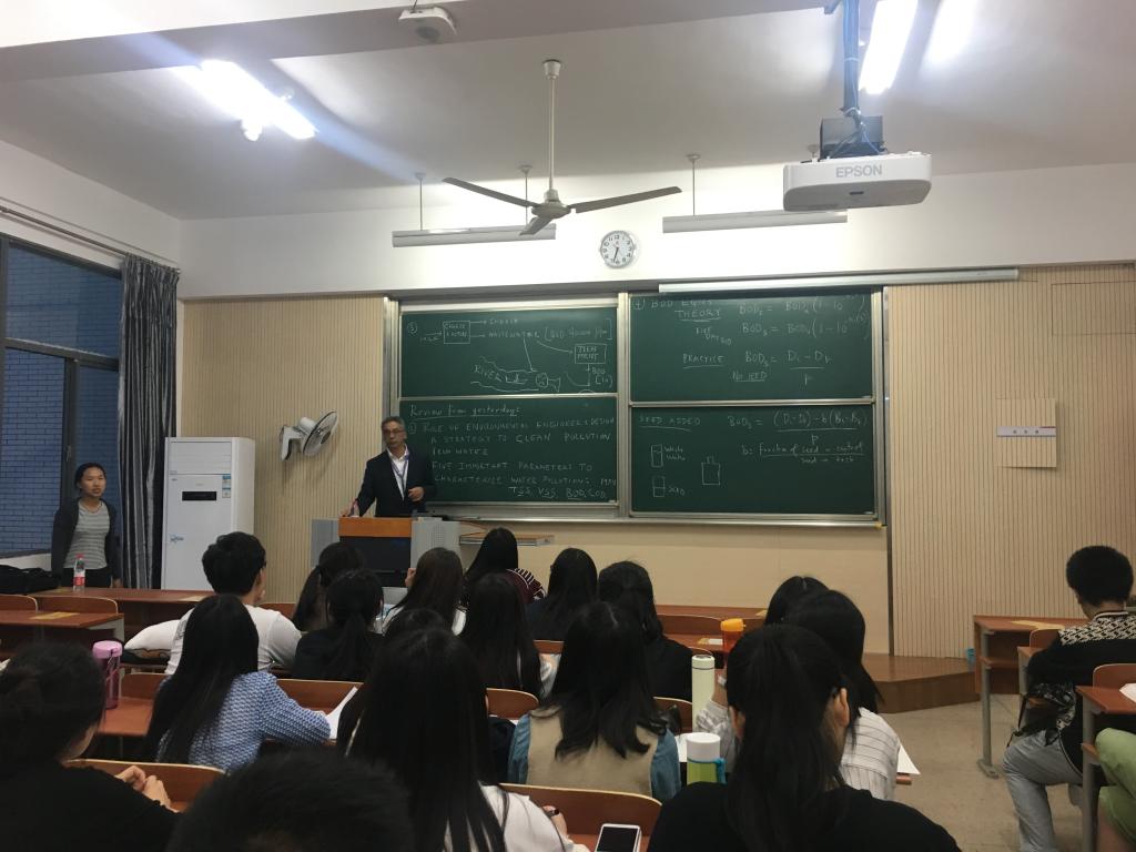 授课最后,教授以他本土国家加拿大的水处理标准为例,让同学们感受到水处理方面所需要的严谨态度,激励同学在日常生活中培养认真严谨的态度。讲座结束后,同学们一致认为讲座让同学们对专业知识有了初步的认识,开拓了视野。