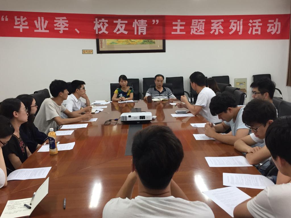 6月22日上午9点,环土学院于学院楼D305召开2013级毕业班学生代表座谈会。本次座谈会由环土学院党委副书记金明媚老师主持,党委书记华渊老师,副院长王登峰老师,辅导员周佳赟老师参会。