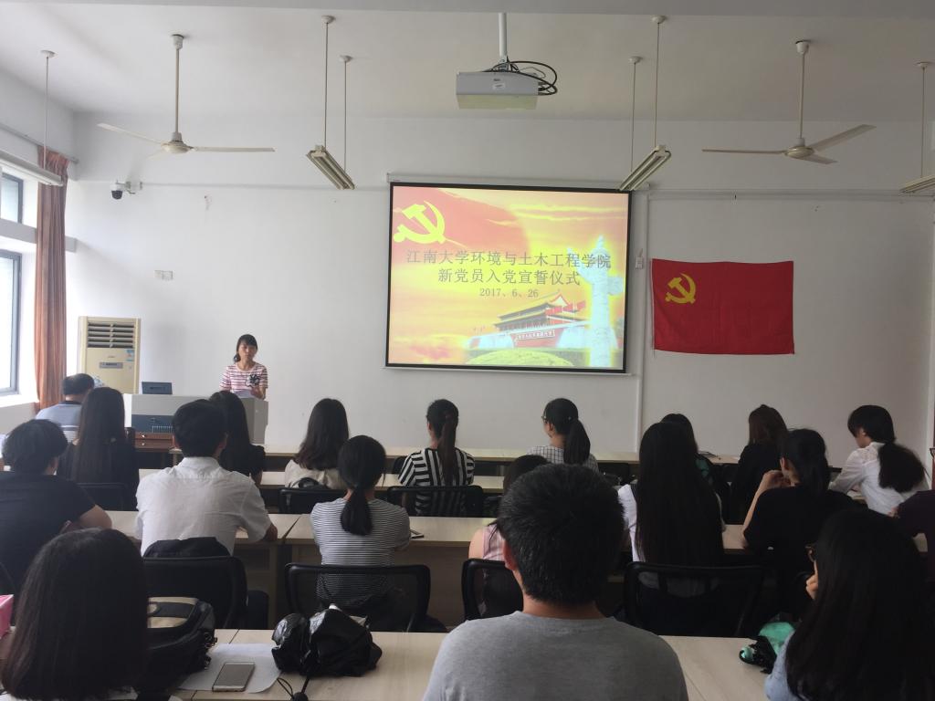 2017年6月26日下午,伟德国际1946bv环境与土木工程学院新党员入党宣誓仪式在环土学院楼D317准时召开。本次宣誓仪式由党委秘书侯杰老师主持,党委书记华渊老师、党委副书记副院长金明媚老师、环境工程辅导员周佳赟老师以及新发展的43名预备党员参加了本次宣誓大会。