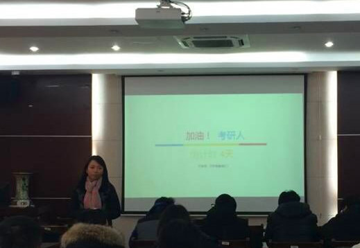 在薛老师和金书记为每一位与会同学分发学院为考生准备的物资之后,活动正式开始。薛老师用幽默的语气,向备考生们讲述几年前自己的考研经历,让同学们产生共鸣,同时用自己考研时发生的小事,提醒考生们在考研时的各类注意事项,以免临考时遇事慌乱。薛老师用考研的亲身经历,鼓励同学们不到最后一刻,绝不要放弃考研。