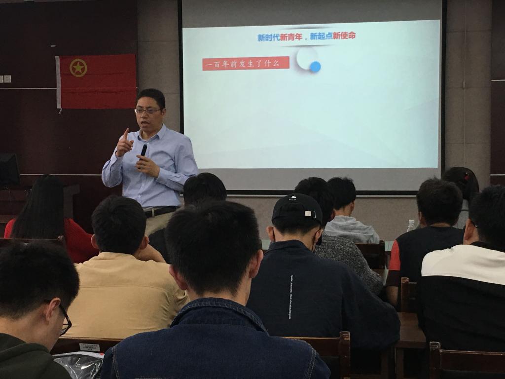 4月13日下午,在环土学院D303会议室,学院第七届“青马工程”训练营举行了思想理论模块的集中培训。学院分团委邀请到了马克思主义学院陈绪新教授,为院青马学员带来了“新时代新青年、新起点新使命——在实现中国梦的生动实践中放飞青春梦想”的主题报告。环土学院分团委书记蒋达锋老师和全体青马学员、特称团支部团员代表等60余人共同参加了此次理论学习。