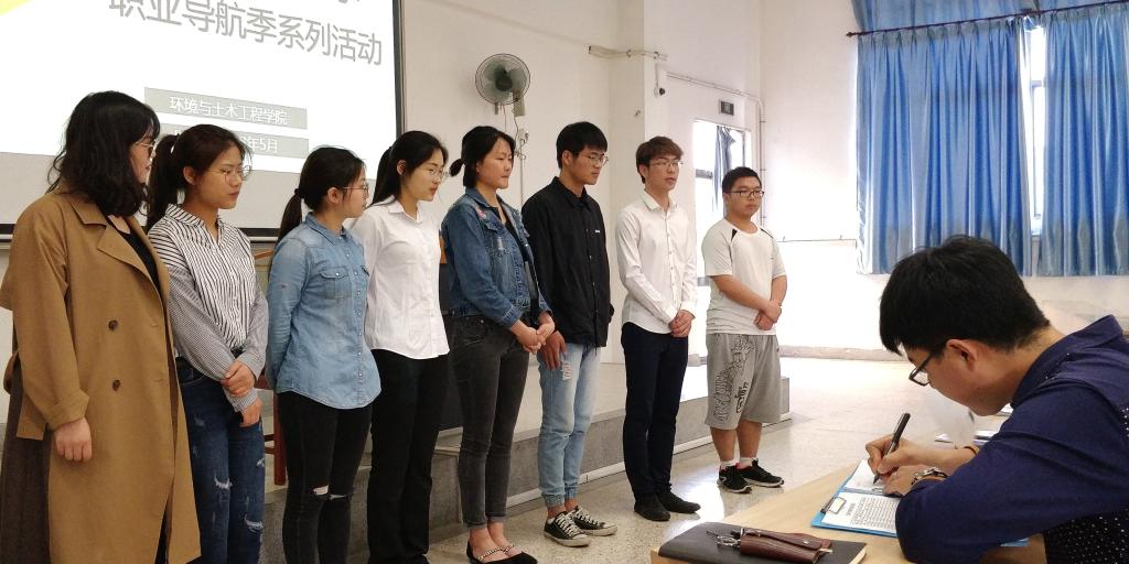 2018年5月8日下午,我院在2A127举办职业导航季系列活动之企业招聘那些事,邀请了500强企业资深HR刘璧瑜进行求职就业指导。学院党委副书记兼副院长金明媚、分团委书记兼工程管理专业辅导员蒋达锋,环境工程专业辅导员周佳赟,土木工程专业辅导员薛羚伟出席了本次活动。