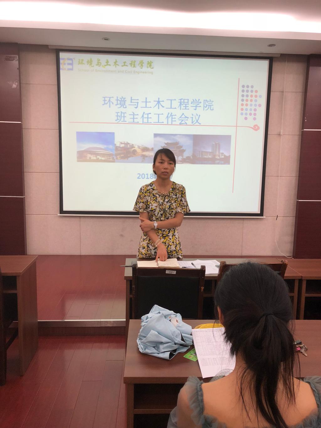 2018年7月4日下午,为了充分发挥班主任的指导作用,进一步加强班级管理,同时布置迎新工作,在环土学院楼D303召开班主任工作会议。全体班主任、辅导员及新生副班主任出席会议。会议由院院党委副书记金明媚老师主持。
