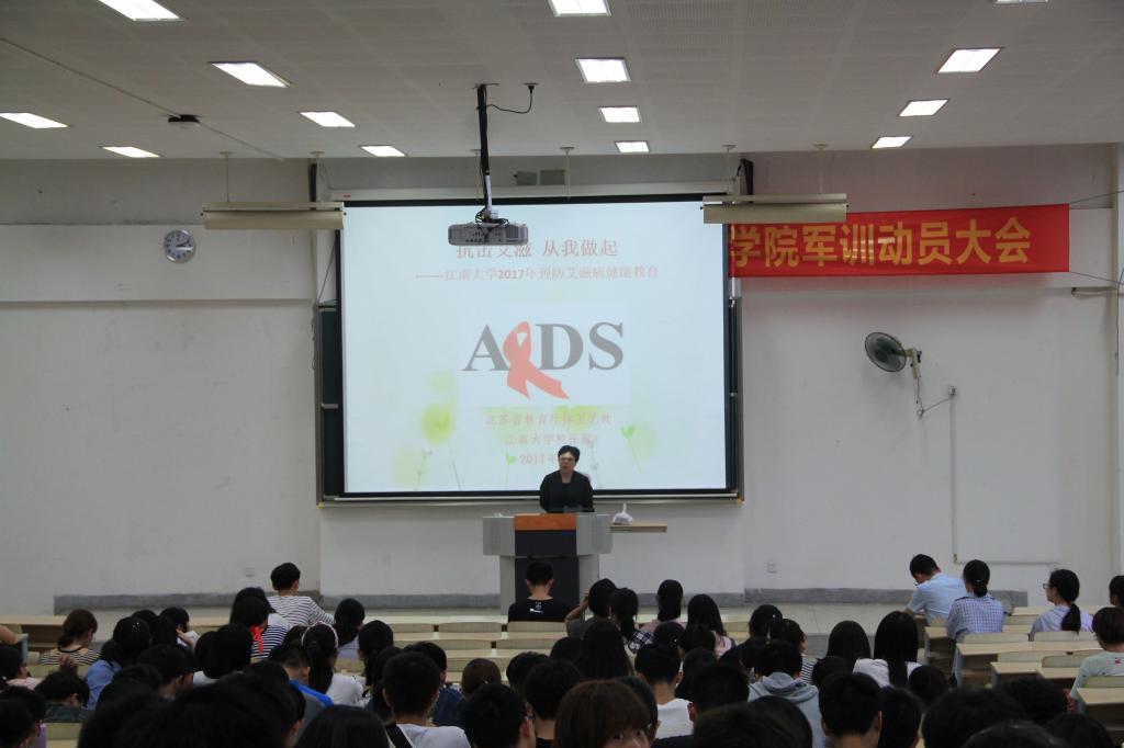 校医院叶军院长从高校预防艾滋病的严峻形势谈起,指出高校已成为艾滋病重灾区之一,大学生自制力与意志力相对薄弱,难以抵挡诱惑,缺乏对艾滋病的正确认知。她呼吁新生们自入学起,自觉增强防艾意识,谨慎交友,自尊自爱,远离艾滋病。