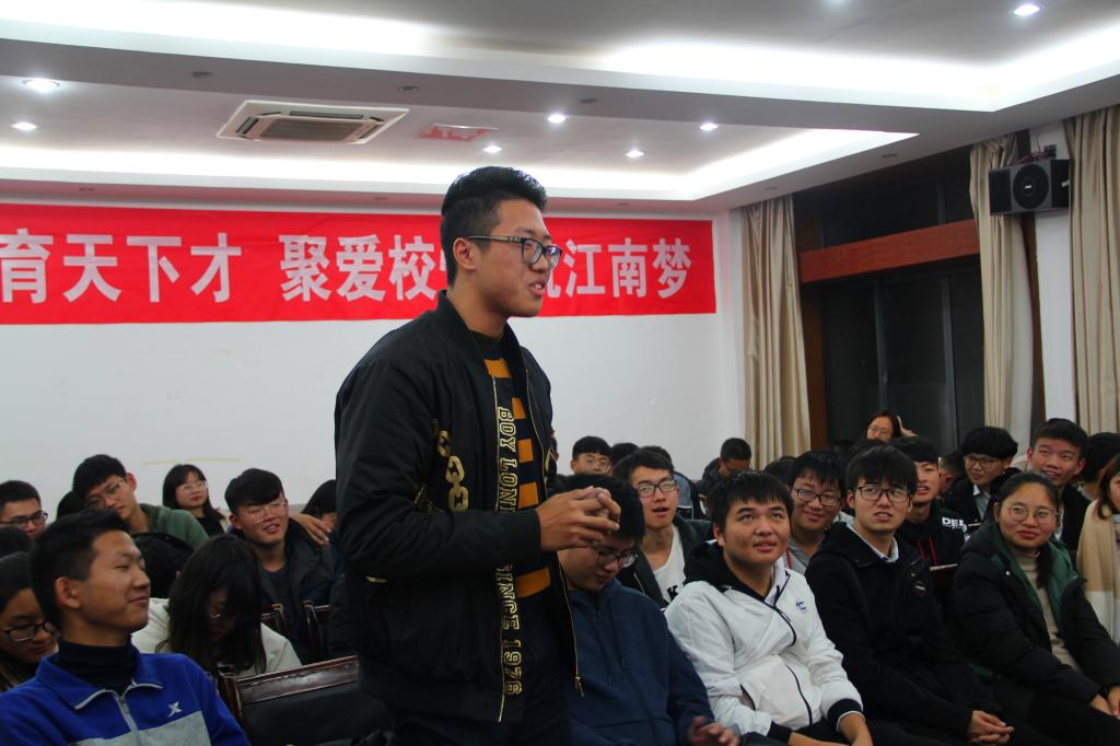 11月21日晚,第五期“杏坛听语”讲座活动在环境与土木工程学院楼D303会议室如期举行。本期由国家科技奖励评审专家、国家自然科学基金通讯评议专家姜晨光教授、环境与土木工程学院梁婵娟副教授、土木1802班班主任李吴刚以及环工1701班沈玉芳同学为土木1801班和1802班的新生作分享交流。本次活动由土木1802班程兰兰同学担任主持人。
