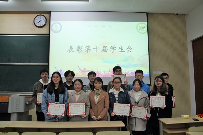 大会在第十届学生会副主席凌子昕同学的工作总结与回顾中开始。她代表第十届学生会回顾了2017-2018学年学生会服务同学、求真务实,团结奋斗、开拓创新,用青春谱写学院学生工作新篇章的动人故事,表达了对新一届学生会工作的期待。金书记为第十届学生会主席团及各部门部长颁发了表彰证书。