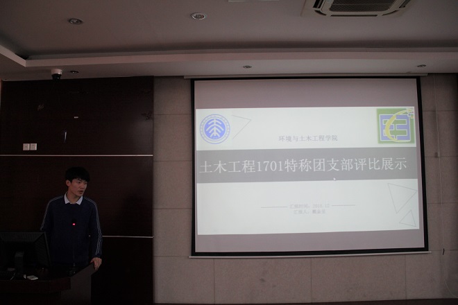 12月12日下午,环境与土木工程学院特称团支部争创暨新老特称团支部交接活动在学院楼D303报告厅成功举行。院党委副书记、副院长金明媚,分团委书记兼学工办主任蒋达锋,土木工程辅导员何涛,分团委学生副书记刘悦以及院学生会主席王洪羽担任评委,16、17、18级各团支部代表出席了本次活动。