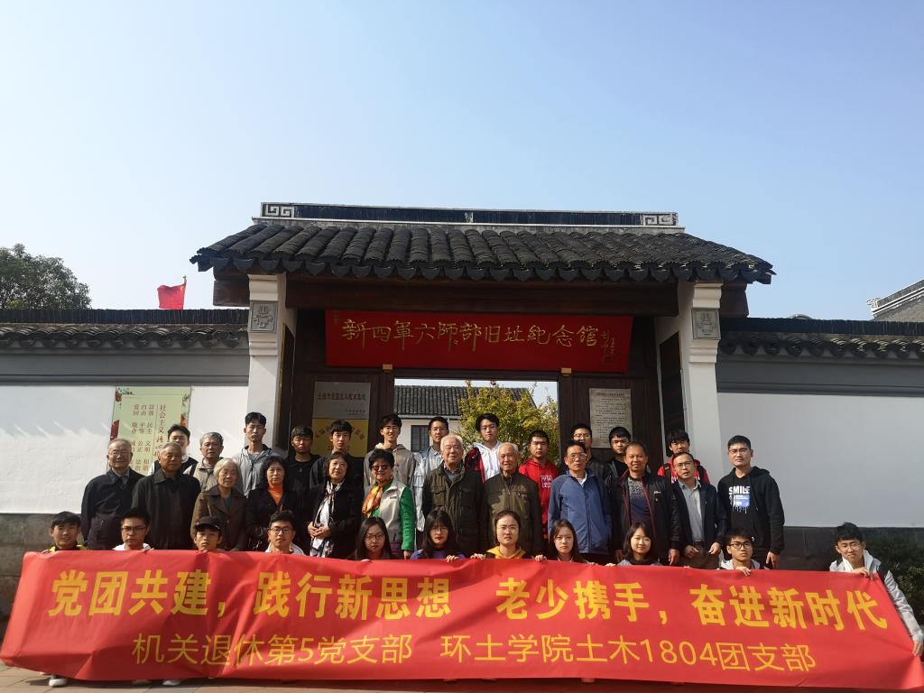 2019年11月10日,环境与土木工程学院团委组织土木1804班团支部与结对共建的校机关退休第五党支部赴新四军六师师部旧址纪念馆、山联村开展参观交流活动。校机关第五退休党支部党员,学院团委书记兼学工办主任蒋达锋、辅导员兼班主任何涛以及土木1804班全体同学参加。