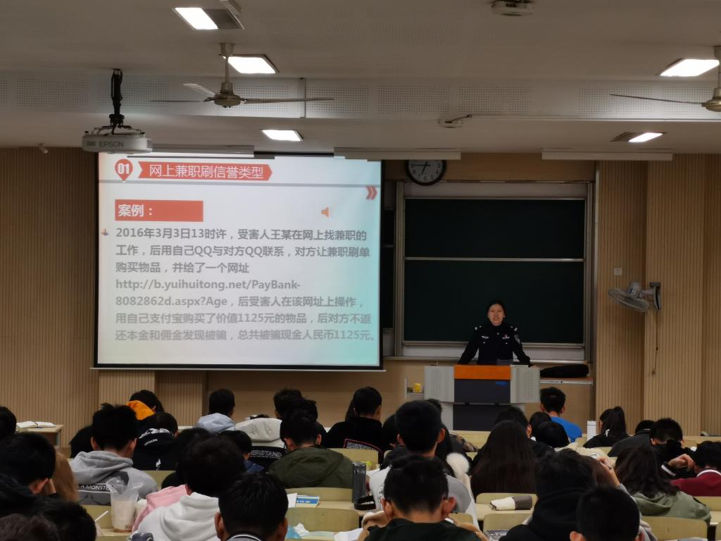 戴警官从网上兼职刷信誉类型、网站购物类型和冒充公检法类型等6个方面介绍了常见的电信网络诈骗种类,并结合实际案例引导同学们要逐步增强防范意识,提高防范能力,警惕陷入电信诈骗的陷阱。讲座在热烈的掌声中落下帷幕。