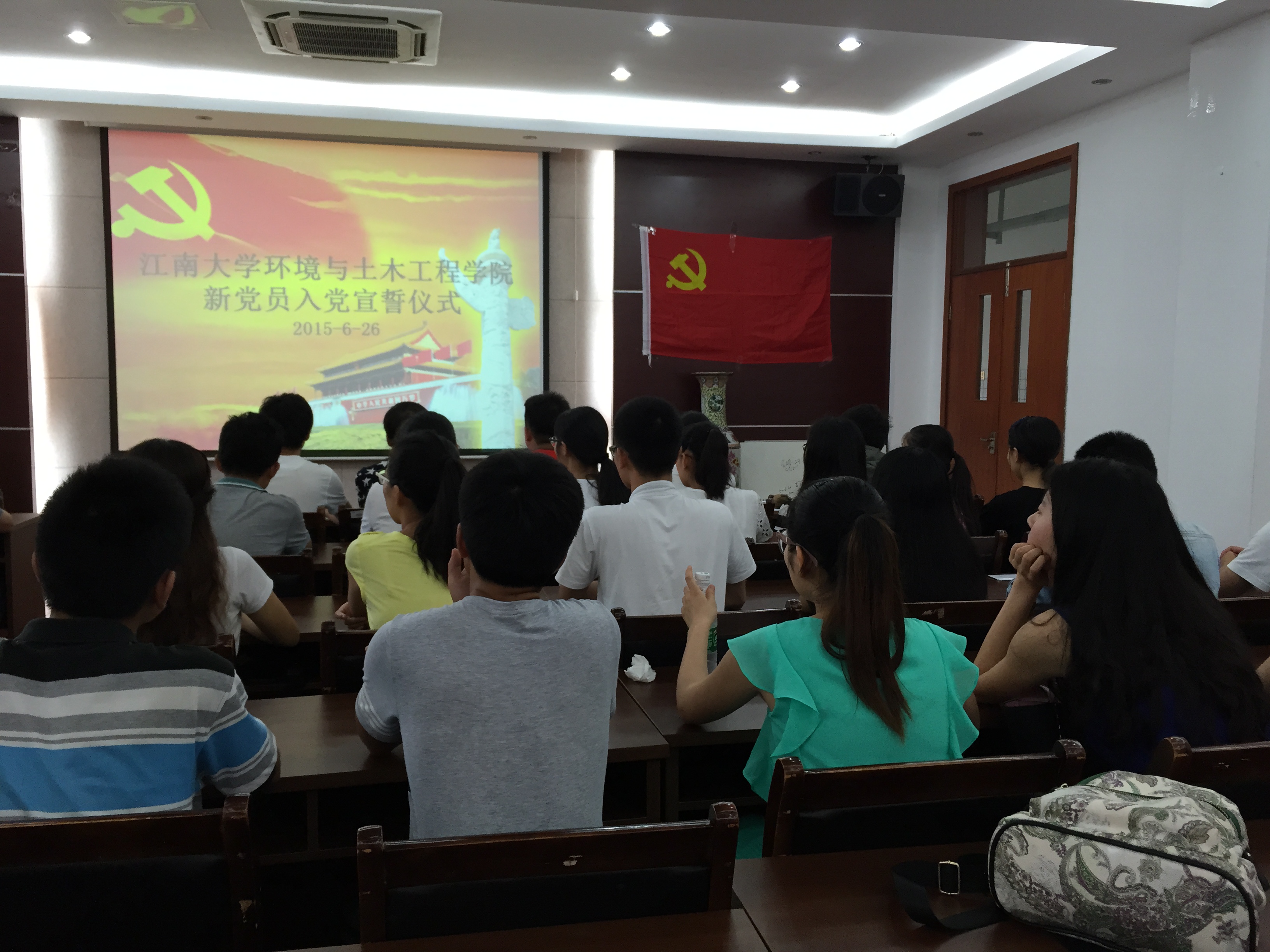 环境与土木工程学院党委于2015626日下午在学院多功能会议室,组织2014下半年发展的新党员8人,2015上半年发展的新党员18人,共计26名新党员,简朴而庄重地举行了“新党员入党宣誓大会”。会议在庄严的《国际歌》声中开始。