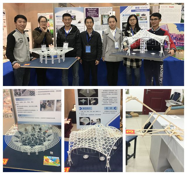 大赛的模型展示竞赛部分,共有来自东南大学、南京航空航天大学、中国矿业大学、解放军理工大学、河海大学、伟德国际1946bv、南京工业大学等34所省内高校参赛学生作品61件参赛。经过激烈角逐,由伟德国际1946bv土木工程和工程管理专业学生组成的两支代表队均获得一等奖的佳绩。其中由连俊英副教授、张聪老师指导,马白璐、梁晓林、詹怡健三位同学制作的模型作品“鞘翅”以其创新的仿生理念和独特的作品构思等方面得到评委们的一致好评。由华渊教授、刘文化老师指导,韩怡天、李志强、刘东停三位同学制作的模型“花语”以其精致的制作工艺和出色的结构设计脱颖而出。