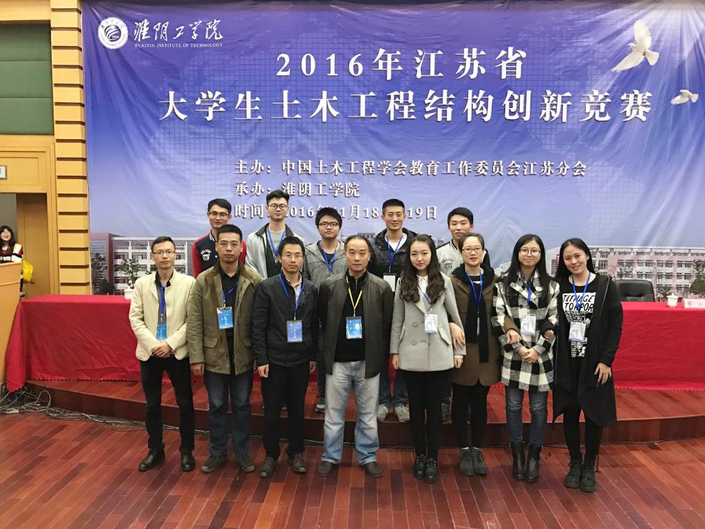 2016年11月18-19日,由中国土木工程学会教育工作委员会江苏分会主办、淮阴工学院承办的2016年江苏省大学生土木工程结构创新竞赛在淮阴工学院成功举行。来自全省35所高校的优秀学子携作品参赛。伟德国际1946bv环境与土木工程学院党委书记华渊教授受邀出席担任评委。本次大赛分为模型展示竞赛和现场模型制作与加载试验竞赛两大环节。我校选送的两件模型作品双双喜获一等奖,加载单元获得二等奖。