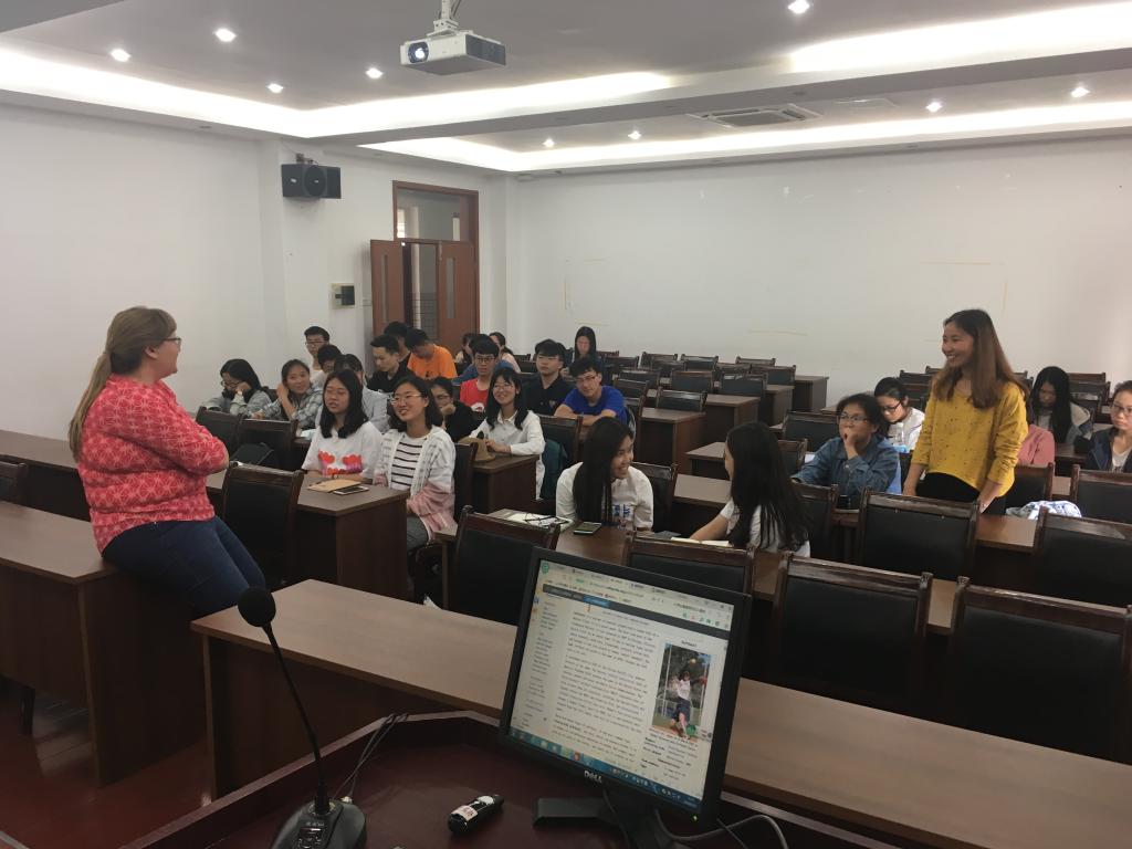 4月27日下午,Bartelt-Hunt教授还与环土学院本科生进行了交流,学生们踊跃发言,向Bartelt-Hunt教授询问美国大学生的学习生活情况、美国研究生院的招生要求及申请流程等,Bartelt-Hunt教授也向学生们学习了一些热门有趣的中文词汇,现场气氛非常活跃,学生们从此次交流活动中锻炼了英文环境中的交流能力,也开拓了眼界。