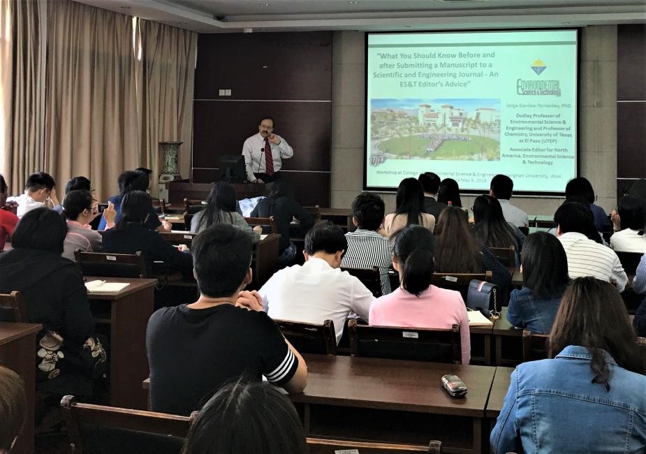 2018年5月9日上午,美国德克萨斯大学埃尔帕索分校(UTEP)化学、环境科学与工程系的资深科学家Jorge Gardea-Torresdey教授应邀访问我院,并在学院D303会议室做了题为“What You Should Know before and after Submitting a Manuscript to a Scientific and Engineering Journal”的学术报告,学术活动由环境过程与污染控制研究所所长王震宇教授主持,我院50余名师生参加了此次报告会。