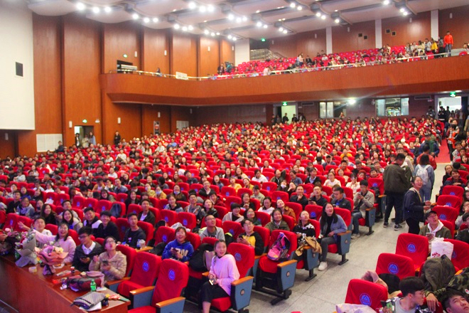 我们的启航,呼唤新担当。武术表演《恣狂》以艺术与力量、动感与节奏的融合,引领新生们全新启航。歌曲串烧《十八岁的天空》伴着悠扬的旋律,余音袅袅,青春昂扬;相声《蠡缘新语》漫谈经典,以幽默的语言,在欢声笑语中引人深思;学院学工团队、新生班主任以及研究生代表带来的歌舞《拥抱美好时光》以美妙动听的青春之声和激情洋溢、活力四射的舞蹈,激起同学们热烈的掌声。表演结束后,老师们现场随机为同学们送上精美礼物,表达美好祝福。在持续不断的掌声与欢声笑语中,晚会圆满落下帷幕。晚会表演期间,不时有现场观众上台献花致意。