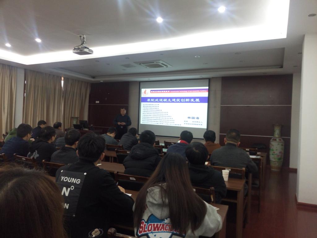 报告会持续了三小时左右,林教授的讲解条理清楚、生动有序,实例丰富,深入浅出,拓宽了听众们的视野。下午林国海教授与我院师生展开了更加深入细致的交流。林国海教授详尽地介绍了其团队自主创新、研发的保温装饰一体化现浇混凝土建筑建造技术、装配式钢管混凝土建筑建造技术、装配式工业建筑建造技术、装配式混凝土管廊建造技术、装配式混凝土建筑建造技术、装配式空腔模块现浇混凝土房屋和装配式全景日光蓄能低能耗农业温室建造技术等,让在座师生获益匪浅。