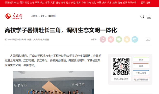 在介绍此次活动的影响时候,学院党委副书记金明媚说道:“大学生社会实践的目的是为了让他们受教育、长才干、做贡献,我们的同学们在实践中结合专业实际,投身长三角一体化的国家战略,用脚步丈量青春,用行动献礼祖国华诞,也更懂得了身上肩负的新时代环境人的使命担当。”