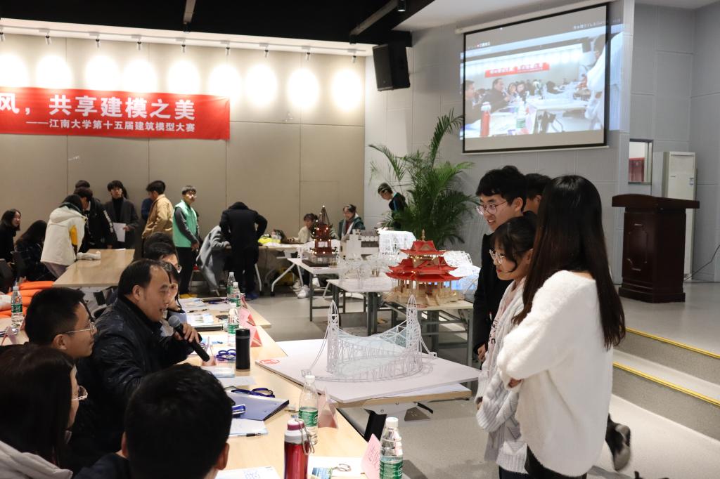 根据评委现场评分与前期线上线下的评分,最终评定各组获胜作品。其中,专业组“蝉”荣获特等奖,专业组“Diamond”等七组获得一等奖,“玫瑰之眼”等共四组获得二等奖。兴趣组“十字角楼”等三组获得一等奖,“北上极光”等五组获得二等奖。“禅意”“天空之城”等20组荣获三等奖。比赛期间,荣获江苏省建筑模型设计大赛一等奖的团队代表为全体同学进行了专业展示与交流。