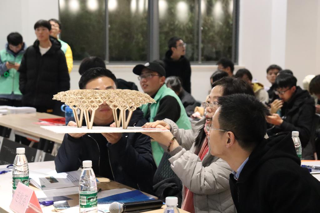 本次比赛分为专业组和兴趣组,评分标准各有侧重。通过初赛、复赛,脱颖而出的20支团队,以PPT形式展示本组模型,分享灵感、创意以及结构设计。在答辩环节,评委老师们向选手提出自己的疑问与见解,并对多组选手的创意表示了肯定。参赛团队则根据创作思路和专业知识回答提问。
