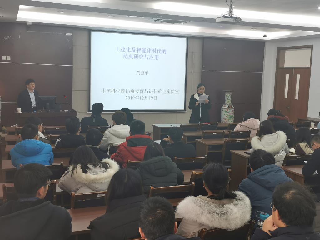 2019年12月19日,应伟德国际1946bv环境与土木工程学院的邀请,国家杰出青年基金获得者、中国科学院上海生命科学院植物生理生态研究所黄勇平研究员对伟德国际1946bv进行了学术访问和交流。黄研究员做了题为“工业化及智能化时代的昆虫研究与应用”的学术报告,刘和院长,缪恒锋副院长等环土学院40余名师生聆听了此次报告。