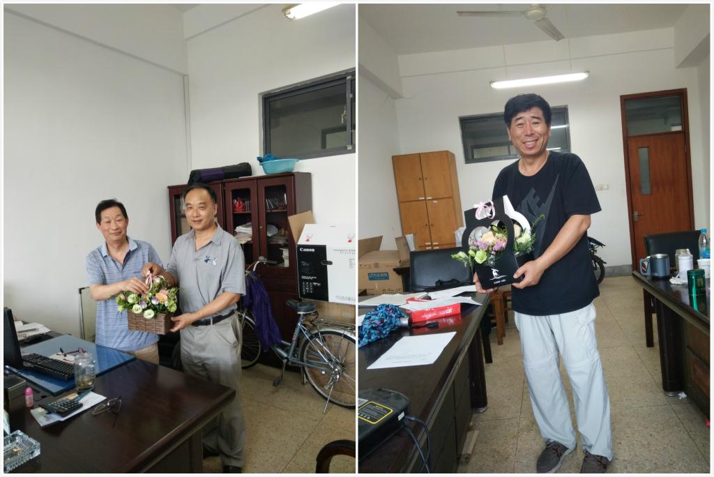 活动中,花艺师逐一介绍了花卉的品种,从修剪、搭配、造型设计等方面进行了详细的讲解,强调了插花的操作技巧和注意事项。在他们的指导下,我院教师兴致盎然,积极施展插花技艺,根据花篮的不同类型,从主花着手,再根据不同的色彩搭配进行空间调整,插出了风格各异的作品,色泽匀称、高低错落。除此之外,老师还集体学习了香槟玫瑰的包装方法。活动结束后,院党委书记华渊代表我院教师将花卉作品献给即将退休的教职工们,表达了对他们几十年如一日在工作岗位上辛勤耕耘的赞美之情。
