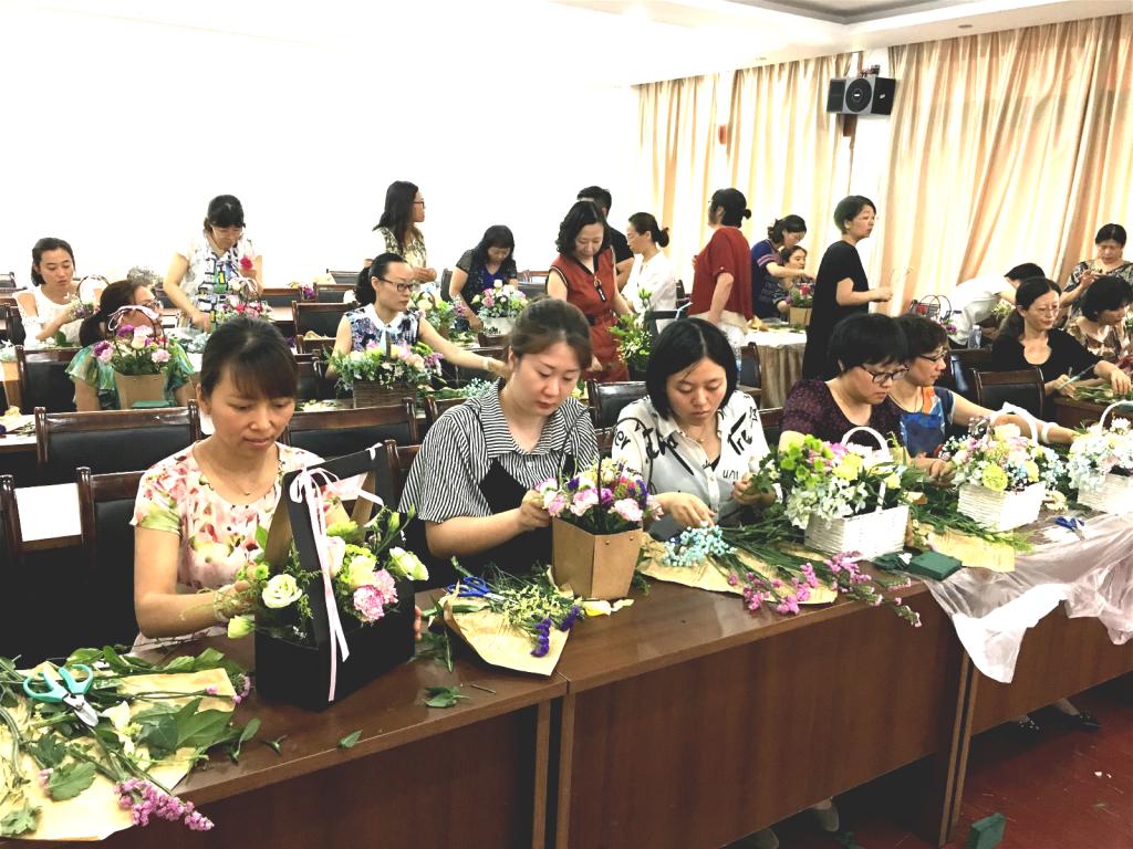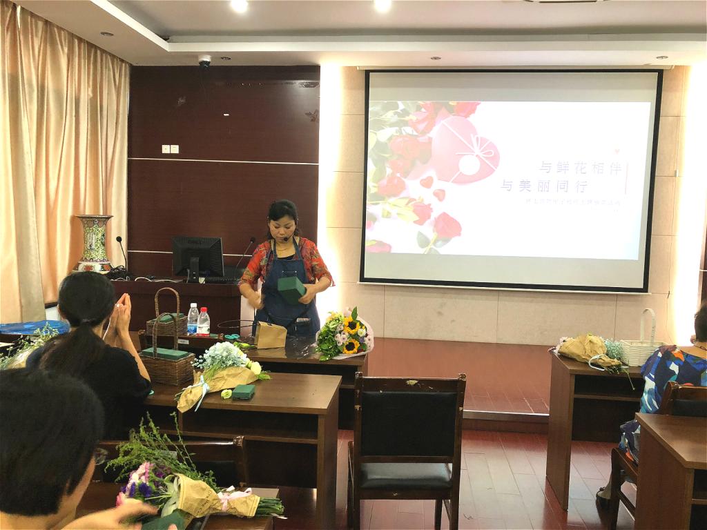 5月16日下午,我院分工会在学院楼303举行“与鲜花相伴 与美丽同行”共贺甲子校庆主题插花活动,邀请了专业花艺师作指导,三十余位教职工参与了本次活动。