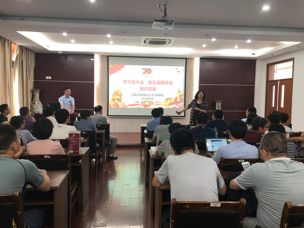2019年6月5日下午,环境与土木工程学院全体教职工济济一堂,由工会发起组织的“学习党代会,献礼祖国华诞”知识竞赛在学院楼D303拉开帷幕。知识竞赛由何涛老师主持。