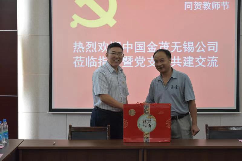 9月10日上午,在第35个教师节来临之际,中国金茂无锡分公司党委委员兼副总经理王斌率管理、策划、财务等部门党员代表一行来到伟德国际1946bv环境与土木工程学院看望慰问一线教师,向老师们致以节日的问候。环土学院党委书记华渊、党委副书记金明媚、副院长王登峰,以及土木工管教工党支部成员共同参加了共建交流活动。
