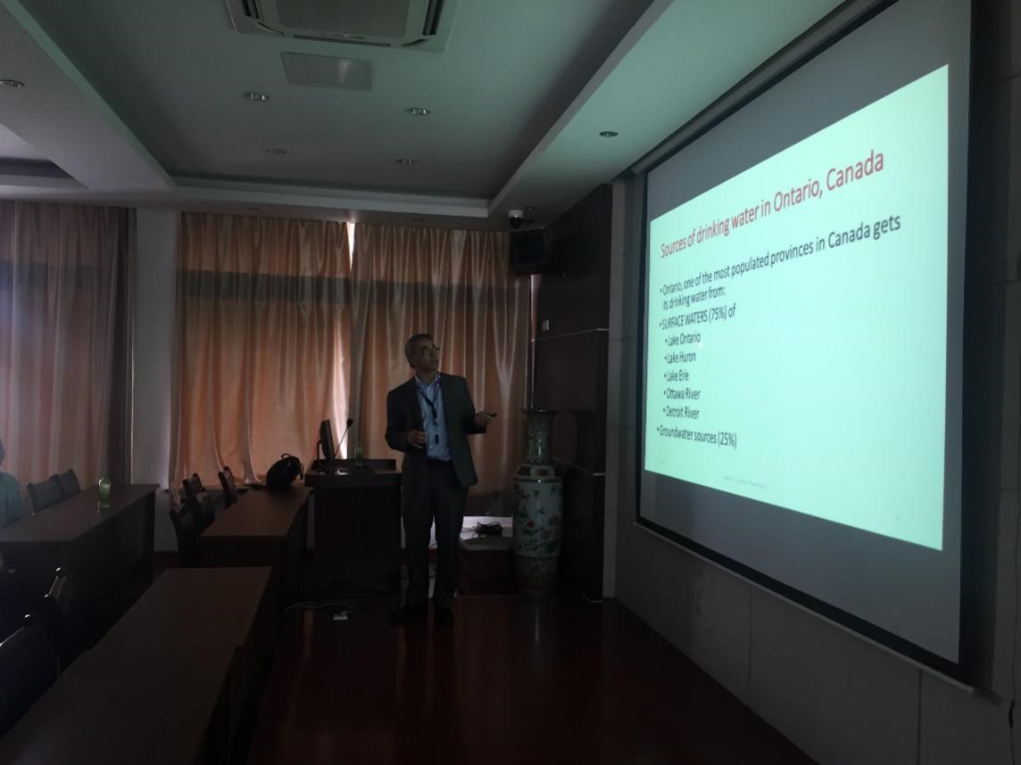 在讲座中,Amarjeet Bassi教授首先介绍了全球水资源概况、加拿大水资源情况以及加拿大饮用水主要水质指标,展示了加拿大饮用水处理面临的主要问题,采用的主要工艺流程和具体的设备,分析了中加两国水处理问题的不同,达标要求的不同,工艺流程的不用和设备的不同,并向同学们介绍了北美饮用水处理工艺的相关重要书籍,此外,与同学们展开了友好的互动,欢迎我院的同学到西安大略大学开展学术交流。