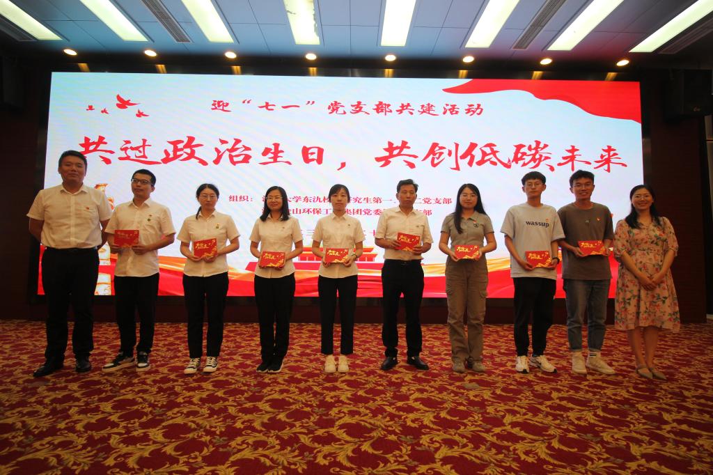 在迎七一党支部共建的活动上,徐韬介绍江苏金山环保工程集团党委第一党支部情况和企业情况,东氿校区研究生第二党支部书记毛雪莲作为党员代表介绍研究生党支部工作,中共宜兴市委党校培训科副科长孙锦霞作专题报告,主题为“党的二十大进企业——习近平的天下情怀”。最后双方党支部对课题研究、行业动向、就业情况等进行座谈交流。整个过程中企业与学生之间有着很好地沟通交流,企业深入了解了新一代青年的思想动态,学生更好地掌握企业对于人才的需求等。会上,支部对6月份新入党的党员同志赠送“生日”贺卡,寄托组织祝福。
