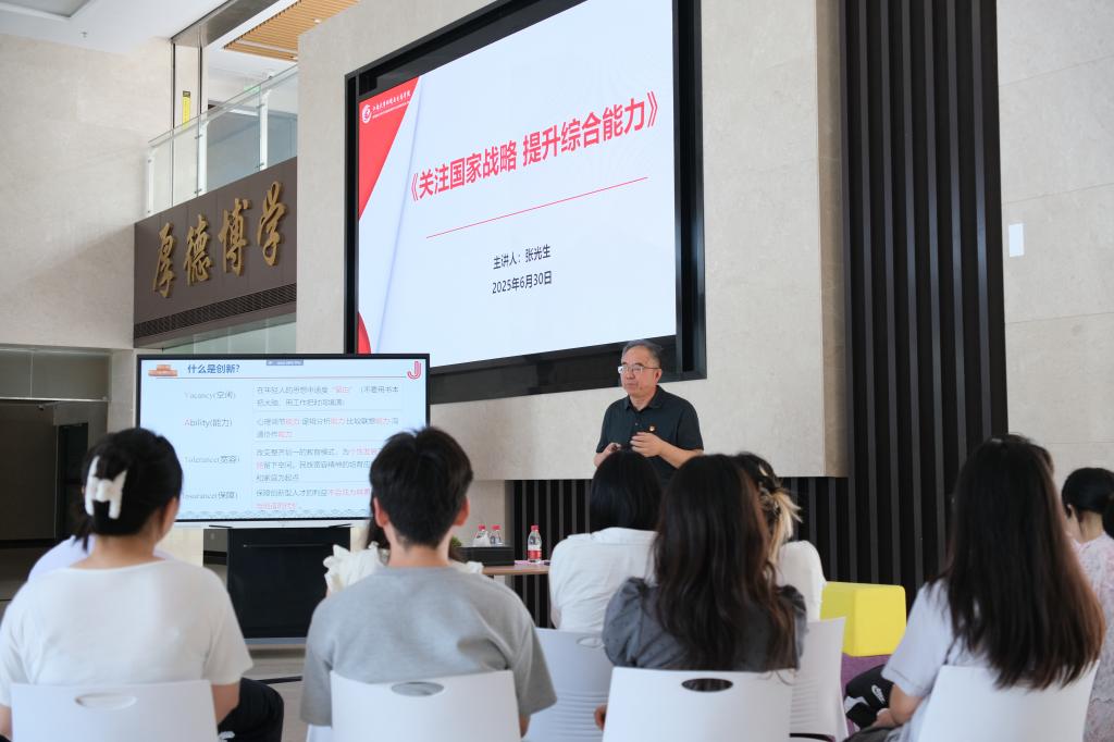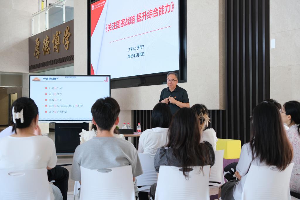 为深入贯彻“青春为中国式现代化挺膺担当”的实践号召,引导青年学生将个人成长融入国家战略,6月30日,伟德国际victor·1946源自关工委常务副主任、宜兴食品与生物技术研究院院长张光生作《关注国家战略,提升综合能力》主题讲座,并同步举行2025年暑期社会实践出征仪式。学院师生代表、暑期实践团成员共同参与活动,为即将奔赴各地的实践团队注入思想动力与行动指引。