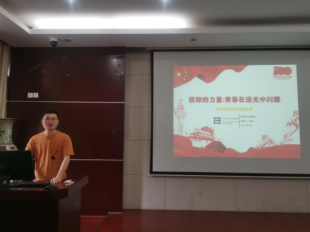 为进一步加强毕业班党员党史学习教育,做好毕业学生的思想、安全教育工作,环境与土木工程学院于5月26日在学院D303会议室为毕业班党员讲专题党课。党课由本科生环工工管专业党支部书记周佳赟,本科生土木专业党支部书记何涛分别讲授,全体本科生、研究生毕业班党员参加。