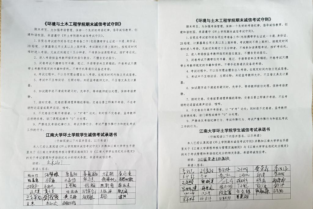 人无信则不立,诚信是立身之本,也是每位大学生应有的道德基础。为进一步引导大学生树立诚信意识,增强自律能力和道德意识,树立良好的考风、考纪。环境与土木工程学院积极开展一系列诚信考试教育活动。
