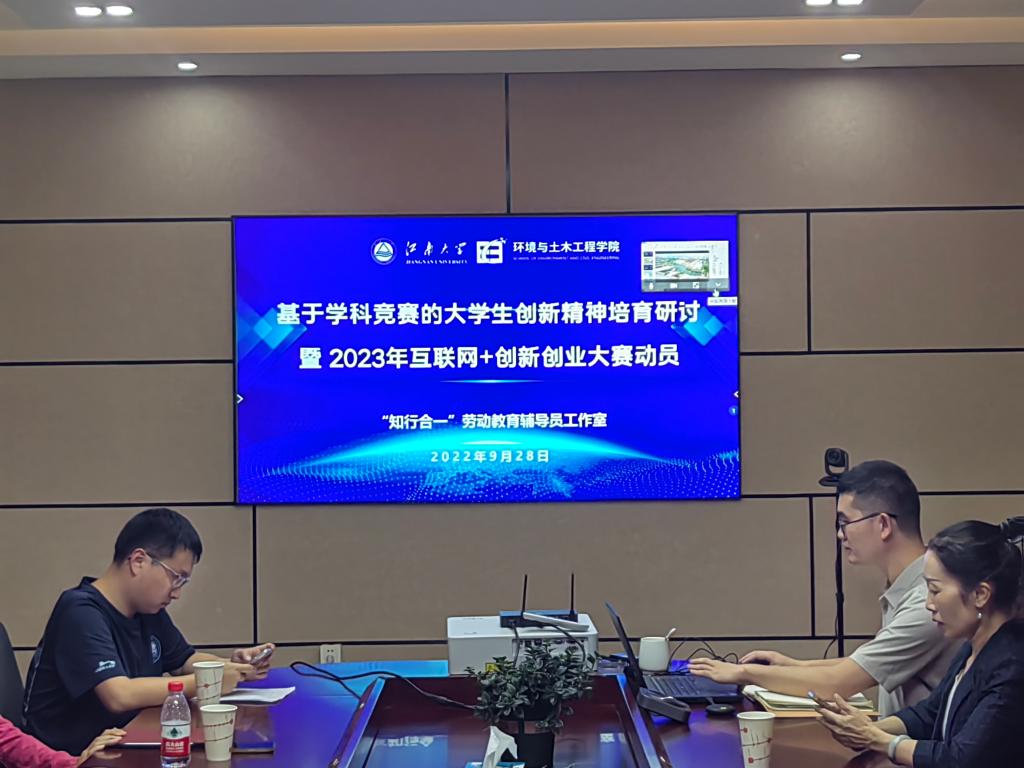 为深入推进“互联网+”大学生创新创业大赛和挑战杯等系列竞赛,培育学生劳动创新精神,928日下午,环境与土木工程学院“知行合一”劳动教育辅导员工作室组织召开基于学科竞赛的大学生创新精神培育研讨会暨2023年“互联网+”大学生创新创业大赛动员会。学校创新创业服务科杨宏华、学院各学科方向青年教师、2022年“互联网+”大学生创新创业大赛优秀项目组成员参加会议。工作室负责人何涛主持会议。