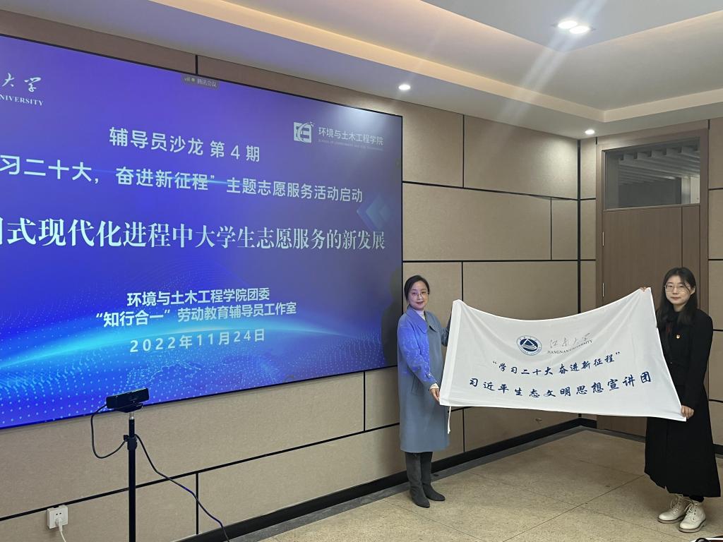 为深入学习贯彻党的二十大精神,深刻领悟中国式现代化的理论内涵,完善环境与土木工程学院大学生志愿服务工作体系,环境与土木工程学院团委、“知行合一”劳动教育辅导员工作室举办第4期辅导员沙龙暨“学习二十大,奋进新征程”主题志愿服务活动启动。本期主题是中国式现代化进程中大学生志愿服务的新发展。