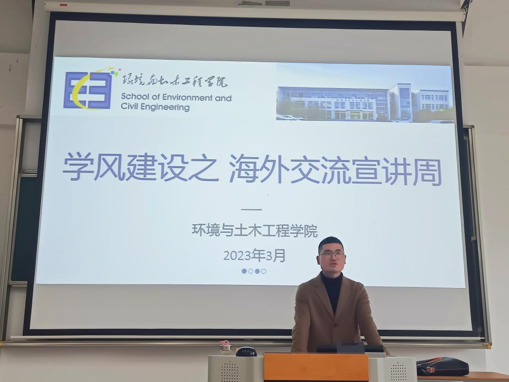 为加强我院学风建设,提高人才培养质量,2023年3月31日下午,环境与土木工程学院在2A127召开学生海外交流宣讲活动。仪式由辅导员何涛主持,辅导员李东辉、环境与土木工程学院2020级、2021级、2022级本科生参会。